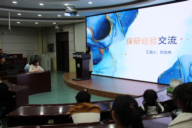 交流会中,鲍婉莹同学分享了自己作为保研边缘人的心路历程。她建议同学们保持良好心态,切勿精神内耗,敢于试错,才能不留遗憾。